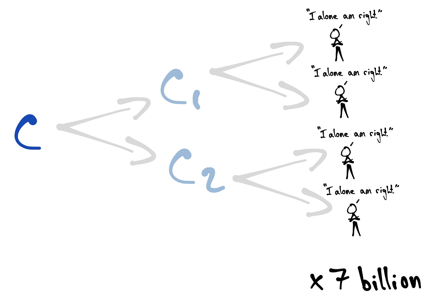 Each person will disagree with literally everyone else, themselves understood by no one, comforted only by fully-customized delusions that hang there and mock them like Christmas baubles on a dead tree — a constant reminder that they got everything they wanted… and it was nothing.
